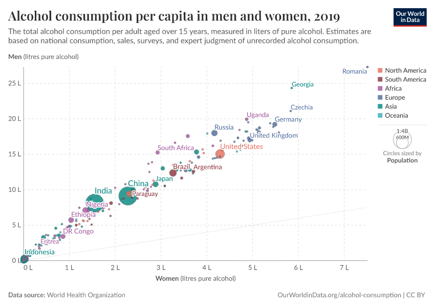 Hannah Ritchie and Max Roser (2022) - “Alcohol Consumption” Published online at OurWorldinData.org. Retrieved from: 'https://drop-density-mdim.owid.pages.dev/alcohol-consumption' [Online Resource]BibTeX citation