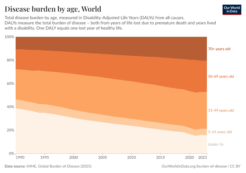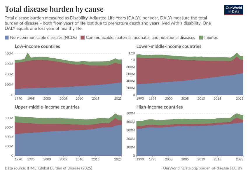 Max Roser, Hannah Ritchie, and Fiona Spooner (2021) - “Burden of Disease” Published online at OurWorldinData.org. Retrieved from: 'https://drop-density-mdim.owid.pages.dev/burden-of-disease' [Online Resource]BibTeX citation