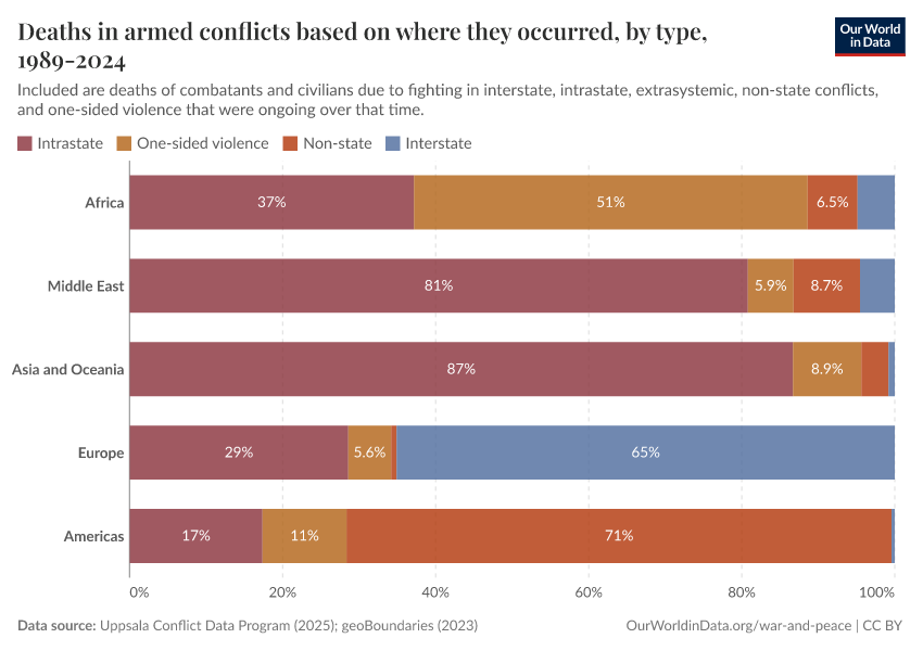 Most deaths come from intrastate conflicts and one-sided violence
