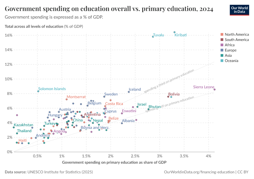 Max Roser and Esteban Ortiz-Ospina (2016) - “Education Spending” Published online at OurWorldinData.org. Retrieved from: 'https://drop-density-mdim.owid.pages.dev/financing-education' [Online Resource]BibTeX citation
