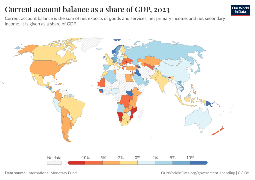 “Data Page: Current account balance as a share of GDP”. Our World in Data (2026). Data adapted from International Monetary Fund. Retrieved from https://drop-density-mdim.owid.pages.dev:8789/20251120-211749/grapher/current-account-balance-as-a-proportion-of-gdp.html [online resource] (archived on November 20, 2025).How to cite this data