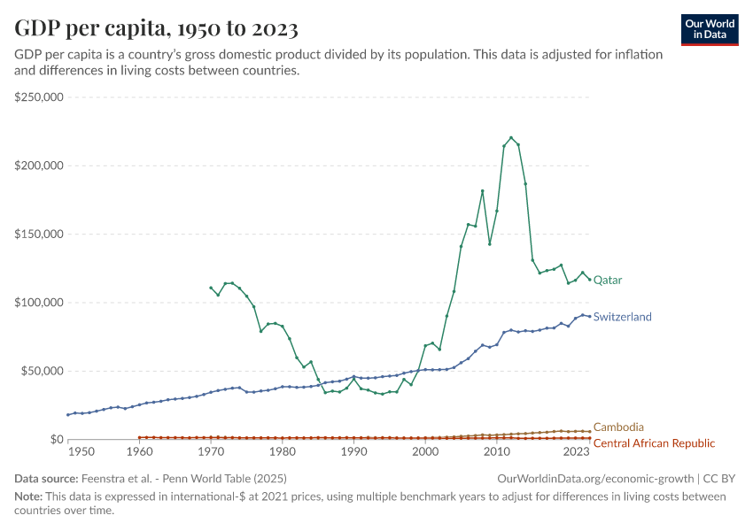 Feenstra et al. - Penn World Table (2025) – with major processing by Our World in Data. “GDP per capita – Penn World Table – In constant international-$” [dataset]. Feenstra et al., “Penn World Table 11.0” [original data]. Retrieved February 25, 2026 from https://drop-density-mdim.owid.pages.dev:8789/20251013-111729/grapher/gdp-per-capita-penn-world-table.html (archived on October 13, 2025).