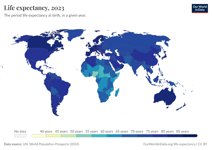 “Data Page: Life Expectancy, age 0”. Our World in Data (2026). Data adapted from United Nations. Retrieved from https://drop-density-mdim.owid.pages.dev:8789/20260225-004721/grapher/life-expectancy-unwpp.html [online resource] (archived on February 25, 2026).How to cite this data