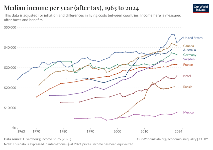 “Data Page: Median income per year (after tax)”, part of the following publication: Joe Hasell, Bertha Rohenkohl, Pablo Arriagada, Esteban Ortiz-Ospina, and Max Roser (2022) - “Poverty”. Data adapted from Luxembourg Income Study. Retrieved from https://drop-density-mdim.owid.pages.dev:8789/20251224-105916/grapher/median-income-after-tax-lis.html [online resource] (archived on December 24, 2025).How to cite this data