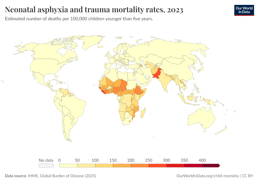 IHME, Global Burden of Disease (2025) – with major processing by Our World in Data. “Neonatal asphyxia and trauma mortality rates” [dataset]. IHME, Global Burden of Disease, “Global Burden of Disease - Deaths” [original data]. Retrieved February 25, 2026 from https://drop-density-mdim.owid.pages.dev:8789/20260211-174736/grapher/mortality-neonatal-asphyxia-and-trauma.html (archived on February 11, 2026).
