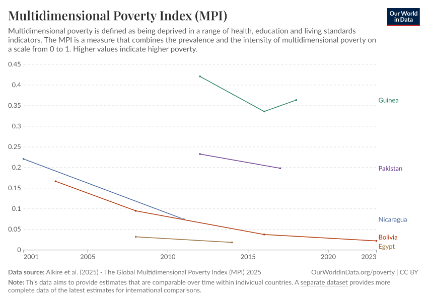 Alkire et al. (2025) - The Global Multidimensional Poverty Index (MPI) 2025 – with minor processing by Our World in Data. “Multidimensional Poverty Index (MPI) – Harmonized over time” [dataset]. Alkire et al., “Global Multidimensional Poverty Index (MPI) 2025” [original data]. Retrieved February 25, 2026 from https://drop-density-mdim.owid.pages.dev:8789/20251229-175603/grapher/multidimensional-poverty-index-mpi-hot.html (archived on December 29, 2025).