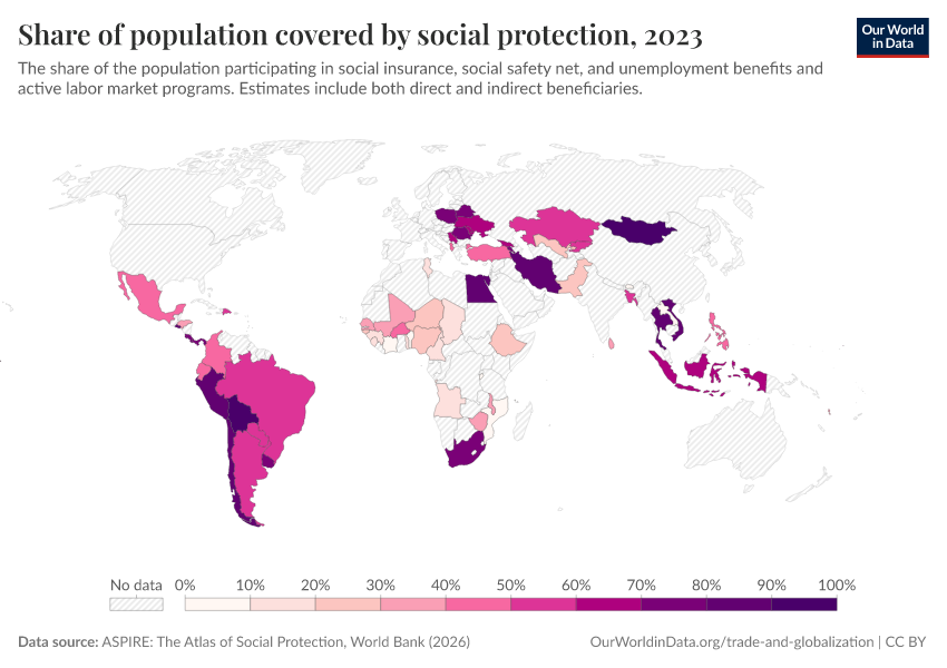 “Data Page: Share of population covered by social protection”. Our World in Data (2026). Data adapted from ASPIRE: The Atlas of Social Protection, World Bank. Retrieved from https://drop-density-mdim.owid.pages.dev:8789/20260202-181317/grapher/share-of-population-covered-by-social-protection.html [online resource] (archived on February 2, 2026).How to cite this data