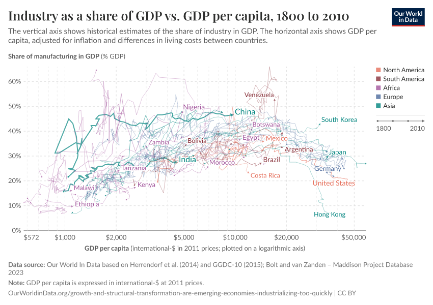 Esteban Ortiz-Ospina and Nicolas Lippolis (2017) - “Are emerging economies deindustrializing too quickly?” Published online at OurWorldinData.org. Retrieved from: 'https://drop-density-mdim.owid.pages.dev:8789/20260119-065148/growth-and-structural-transformation-are-emerging-economies-industrializing-too-quickly.html' [Online Resource] (archived on January 19, 2026).BibTeX citation