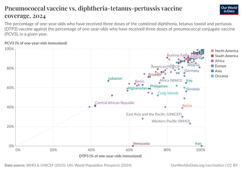 In 2021, around half of one-year-olds worldwide received the third dose of pneumococcal vaccines.