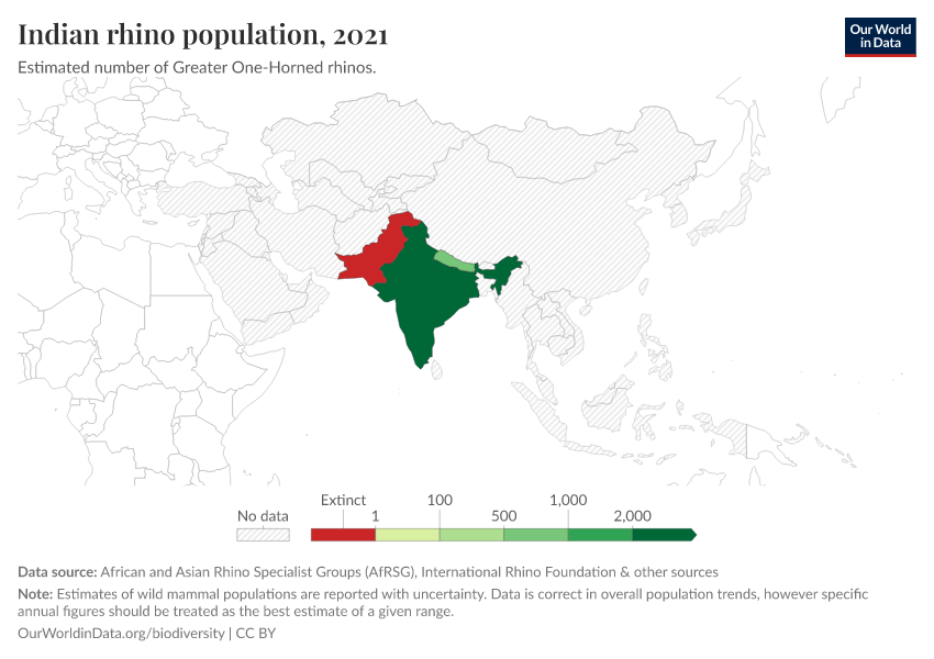 Hannah Ritchie (2022) - “The state of the world's rhino populations” Published online at OurWorldinData.org. Retrieved from: 'https://drop-density-mdim.owid.pages.dev:8789/20251125-173858/rhino-populations.html' [Online Resource] (archived on November 25, 2025).BibTeX citation