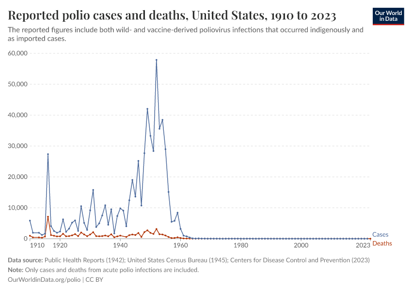 The US has achieved a 100% reduction of cases and deaths for several diseases, and a very substantial decrease for many others.